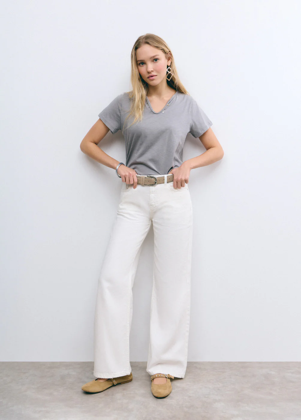 Camiseta de algodón de manga corta y cuello de pico con detalle de botones.