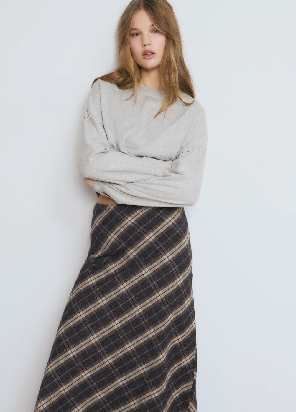 Falda larga cuadros gris