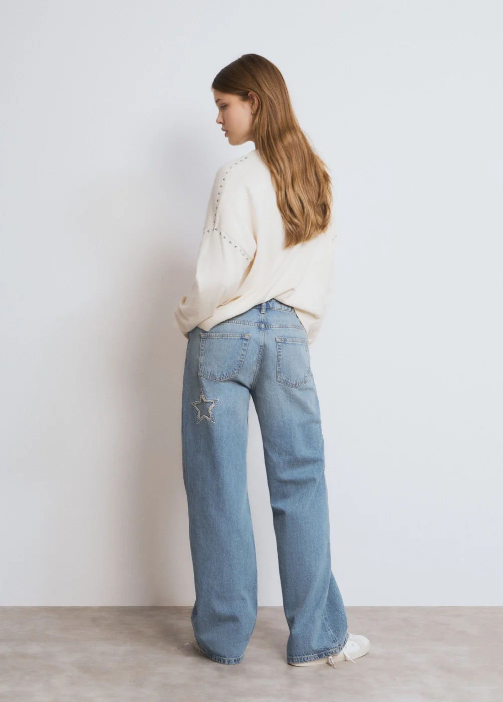 Jeans con detalles de estrellas bordadas con efecto parche desflecado.