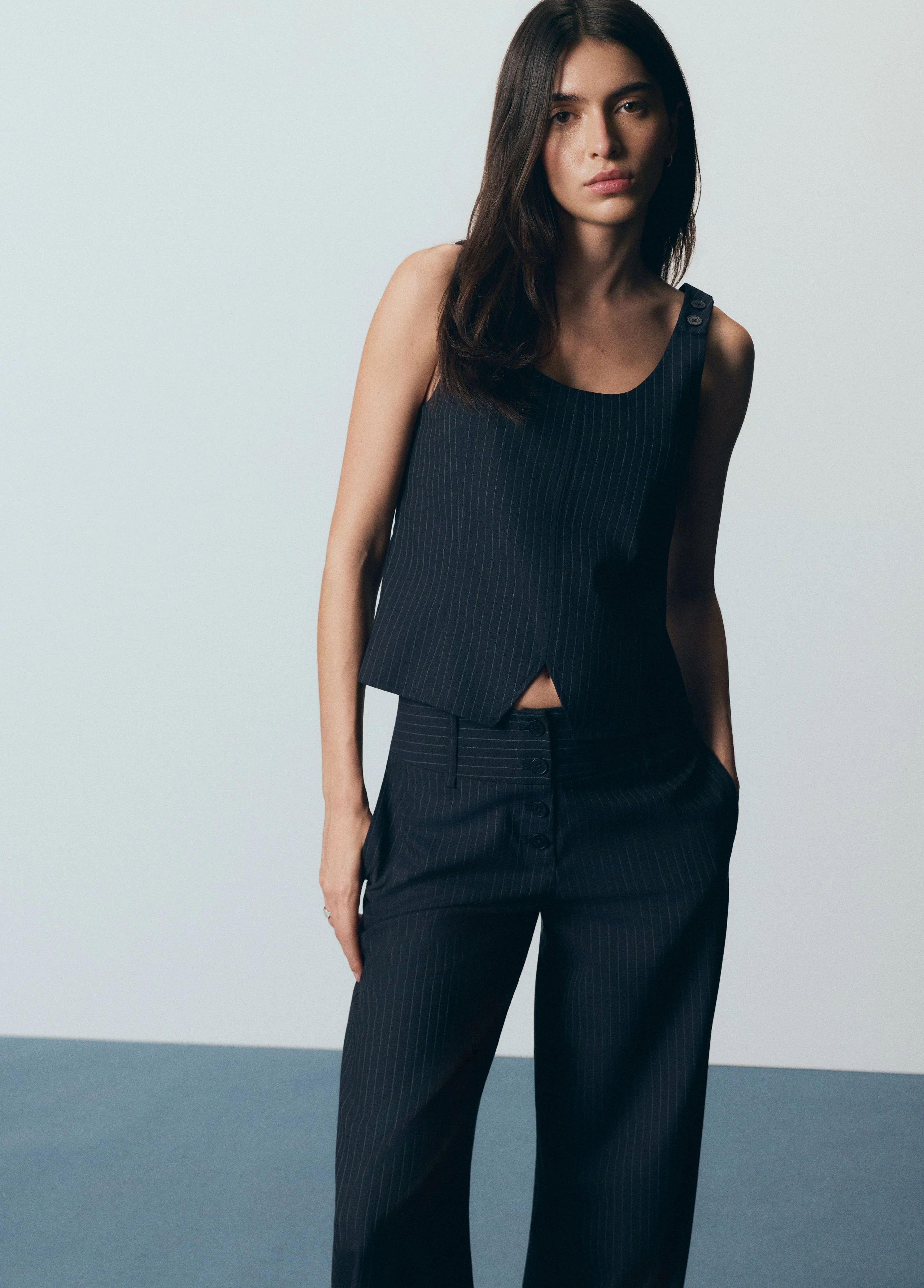 -70%Pantalón cintura ancha rayas—