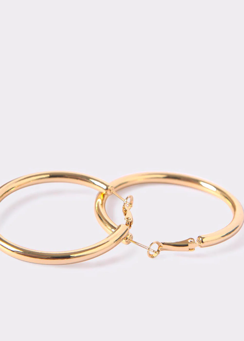 Pendientes grandes dorados con aro grueso.