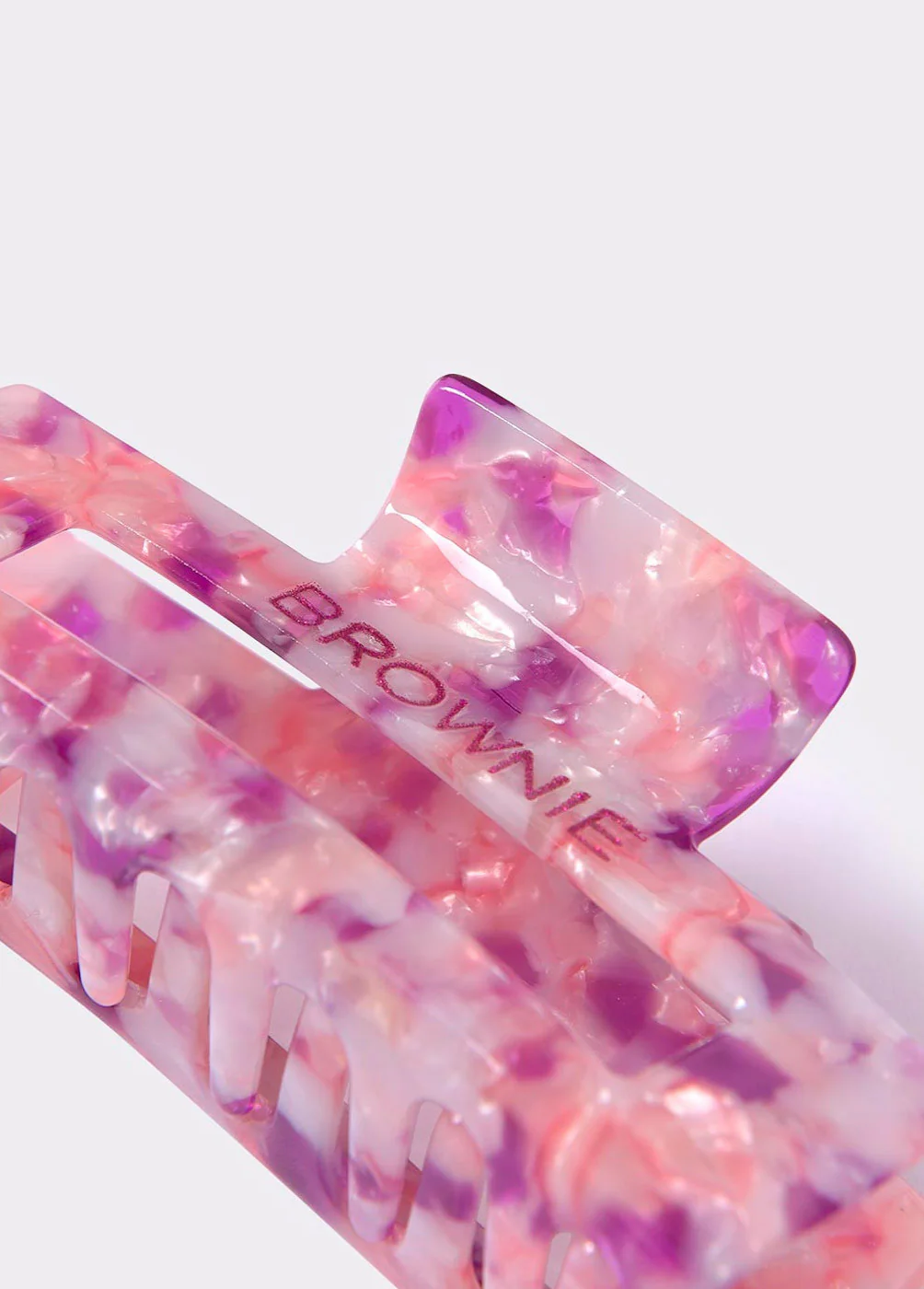 Pinza en tonos rosados de acetato con microestampado y logo Brownie.