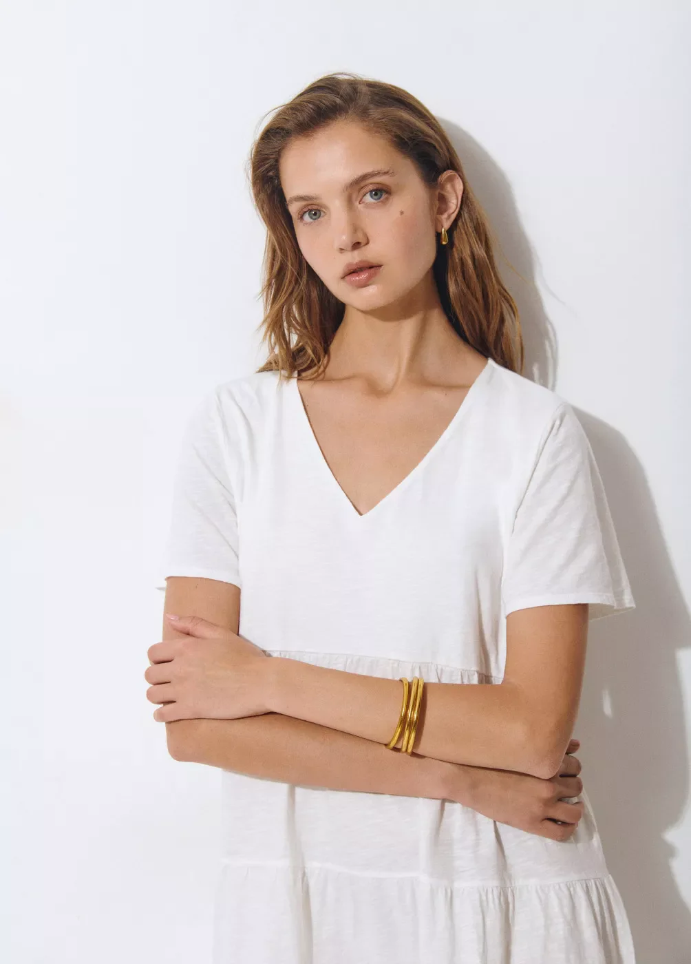 Pulsera dorada Pan de Oro con grabado LUCKY and RICH hechas a mano. Las pulseras Pan de Oro difunden amor, suerte, protección, unidad y buena fortuna para quien las lleva.