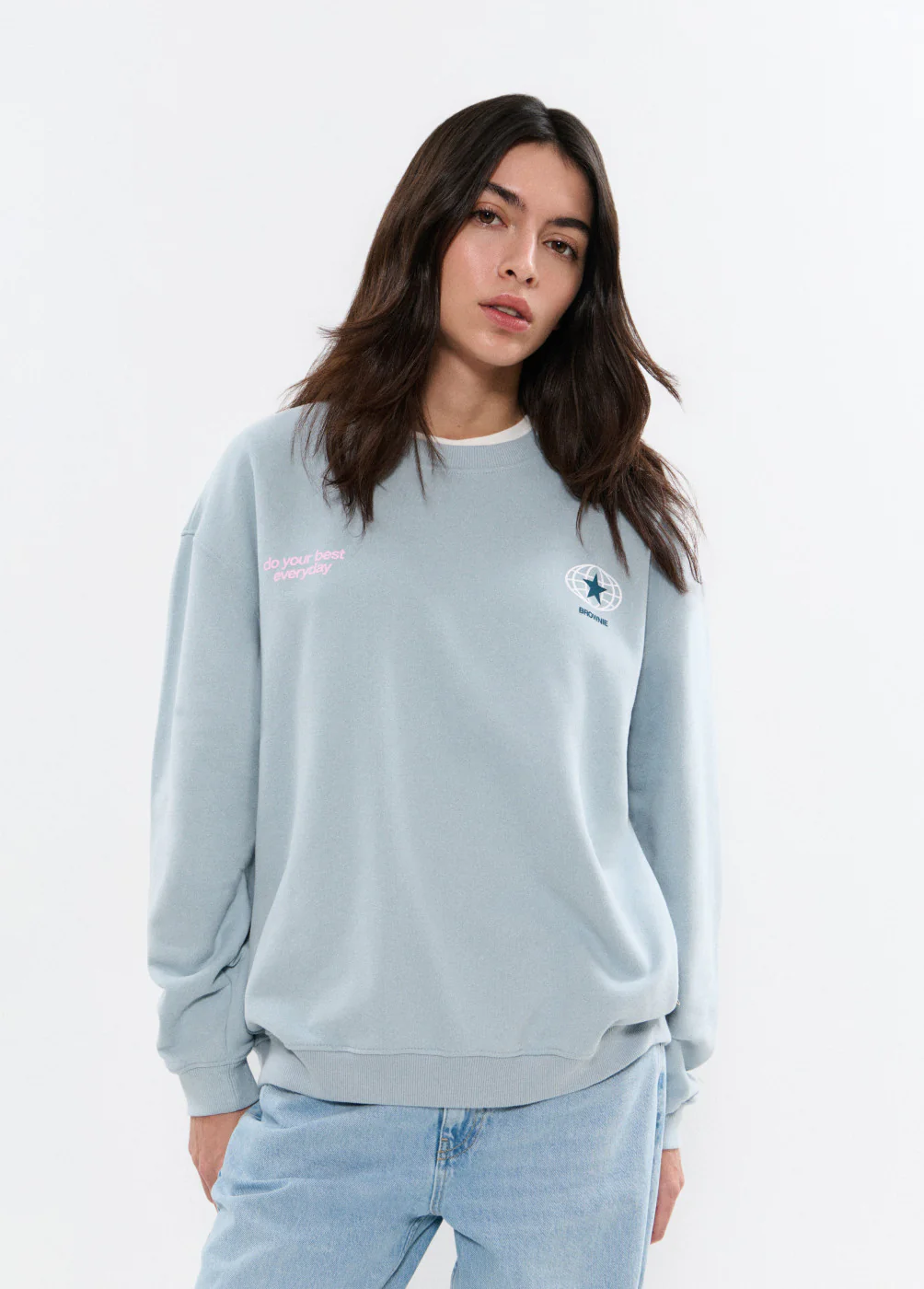 Sudadera cuello redondo logo Brownie con parche en la espalda.